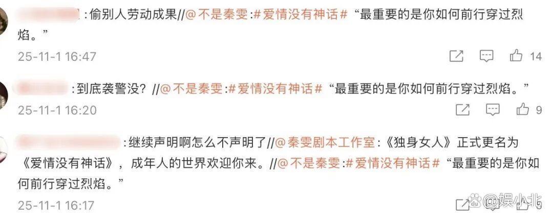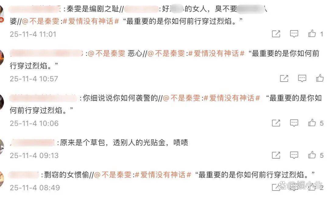 不是“秦雯是编剧之耻”,就是“剽窃的女惯偷”,还有“抵制秦雯的电视剧”,甚至有更多辱骂的话语。